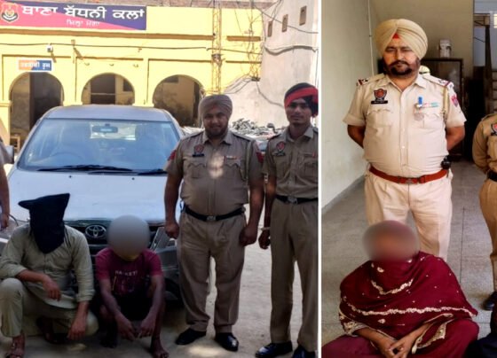 मोगा 6 अप्रैल (मुनीश जिन्दल) ‘युद्ध नशों के विरुद्ध’ मुहीम के तहत जिला मोगा की पुलिस ने एसएसपी अजय गांधी के दिशा निर्देशन में काम करते हुए जिले के विभिन्न थानों की पुलिस ने चार मामलों में कुल 7 लोगों को गिरफ्तार किया है। पुलिस द्वारा इन काबू किए गए लोगों में 2 महिलाएं भी शामिल हैं। व पुलिस ने इनके कब्जे से हैरोइन, नशीली गोलियां, ड्रग मनी व इनोवा गाड़ी बरामद की है। व उक्त मामलों में फिलहाल एक व्यक्ति की तलाश जारी है। थाना बधनी कलां के प्रभारी इंस्पैक्टर गुरमेल सिंह ने बताया कि उनके थाने के सहायक थानेदार गुरप्रीत सिंह ने हरपिंदर सिंह और सोनी व गुरदित सिंह उर्फ गिता, दोनों वासी जिला मोगा को गिरफ्तार कर उनके पास से 10 ग्राम हैरोइन, ₹ 900 ड्रग मनी, व एक इनोवा गाड़ी बरामद की है। थाना धर्मकोट के प्रभारी इंस्पैक्टर जतिंदर सिंह ने बताया कि उनके थाने के सहायक थानेदार सुरजीत सिंह ने मनजीत कौर उर्फ कालो व कृष्णा, दोनों वासी गांव नूरपुर हकीमां, जिला मोगा को गिरफ्तार कर उनके पास से 50 नशीली गोलियां बरामद की हैं। निहाल सिंह वाला व समालसर की पुलिस पार्टियां, काबू दोषियों के साथ। थाना निहाल सिंह वाला के प्रभारी पूरन सिंह ने बताया कि उनके थाने के सहायक थानेदार रघविंदर प्रसाद ने कुलदीप सिंह उर्फ बब्बू व सुखदेव सिंह उर्फ सुखा को गिरफ्तार कर उनके पास से 10 ग्राम हैरोइन बरामद की है। थाना प्रभारी पूरन सिंह ने बताया कि इस मामले में फिलहाल जसकरण सिंह उर्फ जस्सू, पुलिस की गिरफ्त से बाहर है। जिसे कि जल्द काबू कर लिया जाएगा। इसी प्रकार थाना समालसर के प्रभारी जनक राज ने बताया कि उनके थाने की सहायक थानेदार सतनाम कौर ने धर्म सिंह वासी गांव वांदर को गिरफ्तार कर उसके पास से 50 नशीली गोलियां बरामद की हैं। फिलहाल पुलिस द्वारा चारों ही मामलों में दोषियों के खिलाफ एनडीपीएस एक्ट के तहत मामले दर्ज कर इनके बैकवर्ड व फॉरवर्ड लिंक जानने की कोशिश की जा रही है। Share this: Click to share on Facebook (Opens in new window) Facebook Click to share on X (Opens in new window) X Click to share on WhatsApp (Opens in new window) WhatsApp Like this:Like Loading...