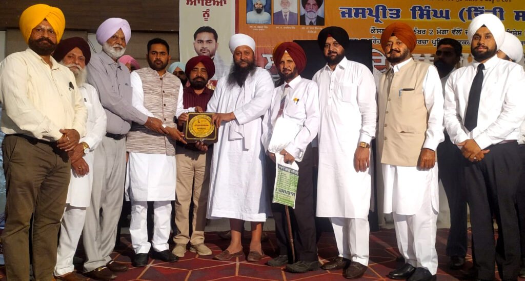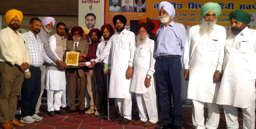 ਸੰਤ ਗੁਰਮੀਤ ਸਿੰਘ ਖੋਸਾਕੋਟਲਾ ਨੂੰ ਸਨਾਮਨਿਤ ਕਰਦੇ, ਪਤਵੰਤੇ।